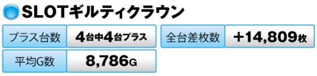 4台すべてがプラスで全台差枚数は+10,014枚だった。