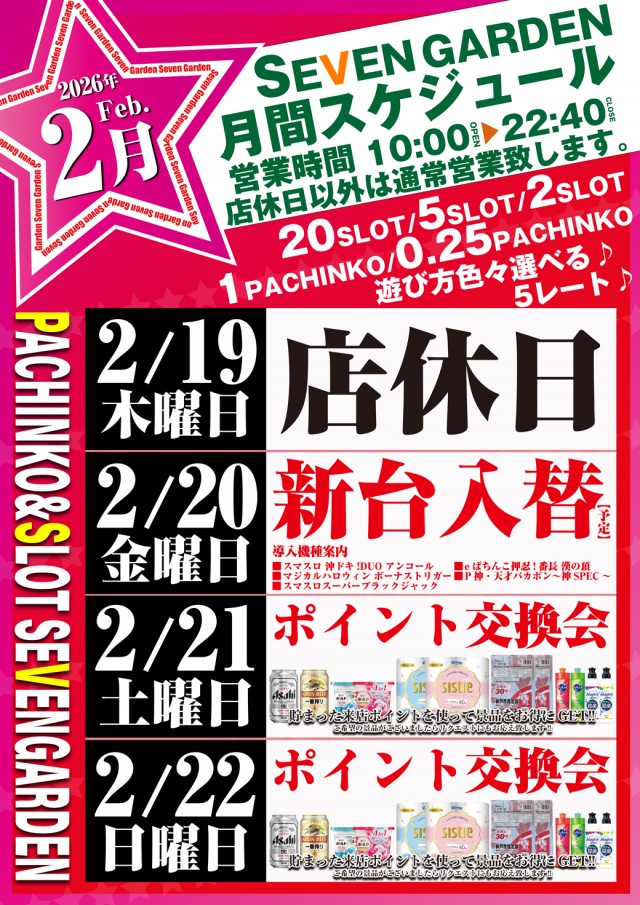 本日2月20日(金)新台入替初日!!朝10時OPEN!!