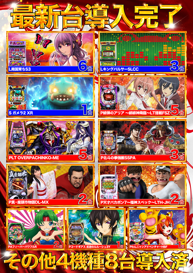 ★最新台導入完了★L忍魂・バジ絆2を中心に6機種11台導入済