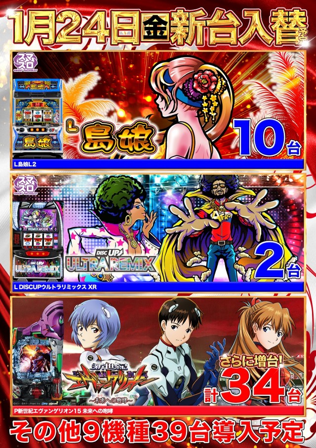 ★1月24日(金)新台入替★全12機種53台導入予定!