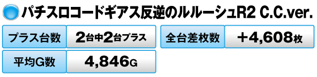 台数こそ少ないが、ともに挙動の良さが目立ったのが『パチスロコードギアス反逆のルルーシュR2C.C.ver.』、と『クランキーセレブレーション』。