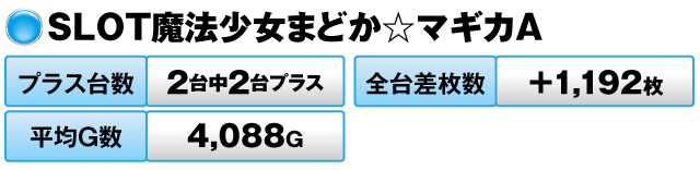 その他では、『SLOTバジリスク〜甲賀忍法帖〜Ⅲ』、『SLOT魔法少女まどか☆マギカA』も全台プラスの素晴らしさだった。
