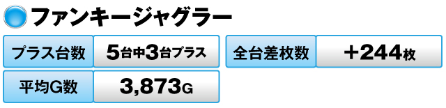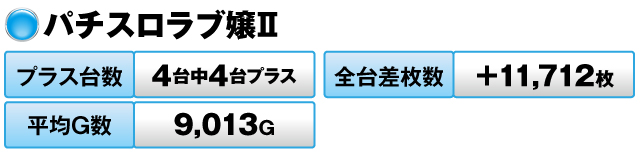 4台すべてがプラスで全台差枚数が+11,712枚、平均G数も9,013Gを記録している。