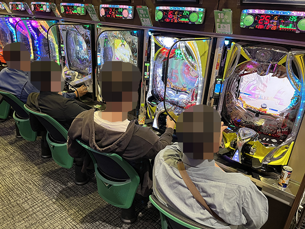 取材時は多くのプレイヤーが来店。パチンコ・パチスロともに、様々な機種が支持を得ていた。