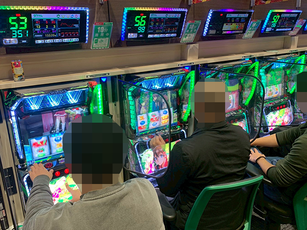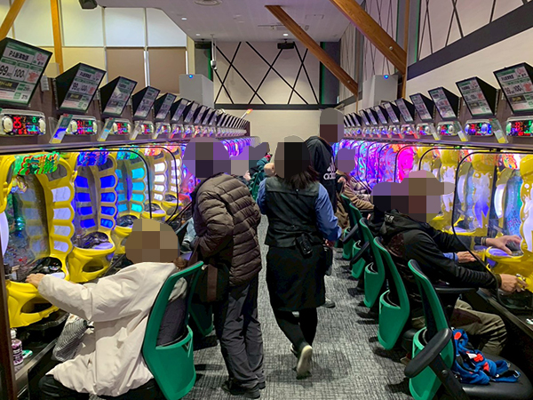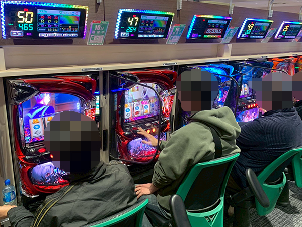 500円/94枚パチスロの稼働も高い。プレイヤーたちが楽しそうにレバーを叩く姿を目撃している。