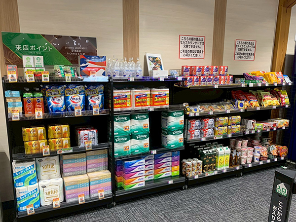 景品コーナーには日用品・インスタント食品・酒類など多彩なアイテムが揃っており、プレイヤーたちの目を引いていた。