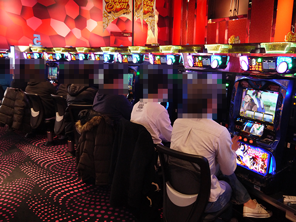 1円パチンコも空席が少ないほど盛況。