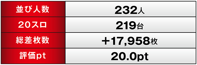 今回も集まったプレイヤーの期待を上回る結果で、幕を下ろした。スロ総差枚は当たり前のようにプラス。20スロ全219台の1台あたりの平均差枚も+82枚と、上々の結果であった。何気に楽しんでいたアカネも、この日の結果には満足していたぞ。