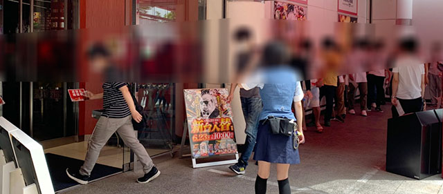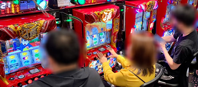 根気強くレバーを叩く姿があったのは、『ジャグラー』シリーズや『SLOTマッピー』『新ハナビ』も同様だ。特に活気と熱気に満ちていたのが『新ハナビ』で、524番台+2,639枚という数字だけでなく、10,180Gも遊技されたいたことに驚かされるだろう。『マイジャグラーV』も朝から真っ先に埋まる人気ぶりを見せており、粘り強く戦った台でプラス差枚を手にした様子が窺える。