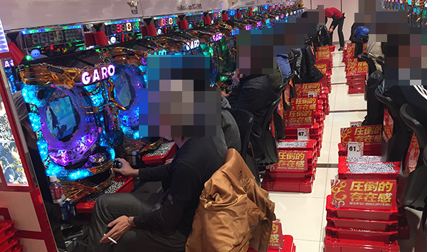 この日の4円パチンコで、もっとも活気が感じられたのは「CR牙狼 魔戒ノ花」。空き台が出ることもほとんどなく、高い瞬発力を堪能しているようなプレイヤーも多かった。