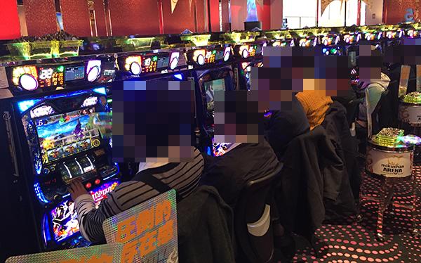 5円パチスロにも空き台はほとんどなく、「SLOT魔法少女まどか☆マギカ」や「ミリオンゴッド-神々の凱旋-」では、プレイヤーも満面の笑みを浮かべていた。