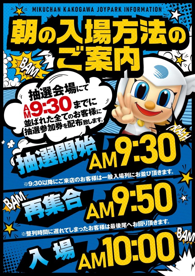 9:30分抽選開始 9:50再集合 10:00OPEN |