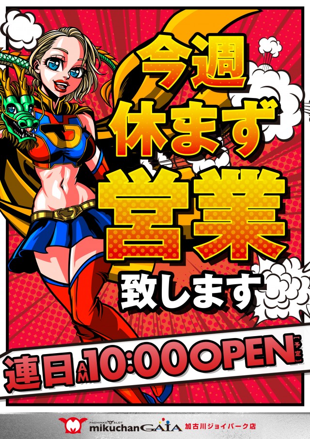 今週休まず営業ジョイパークで月曜からワクワクを!