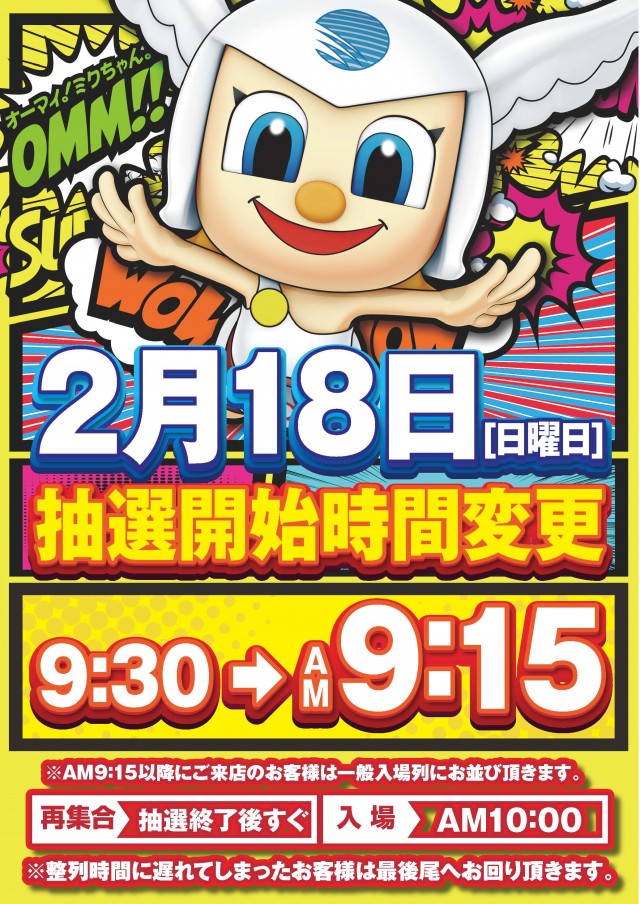 9:30分抽選開始 9:50再集合 10:00OPEN |