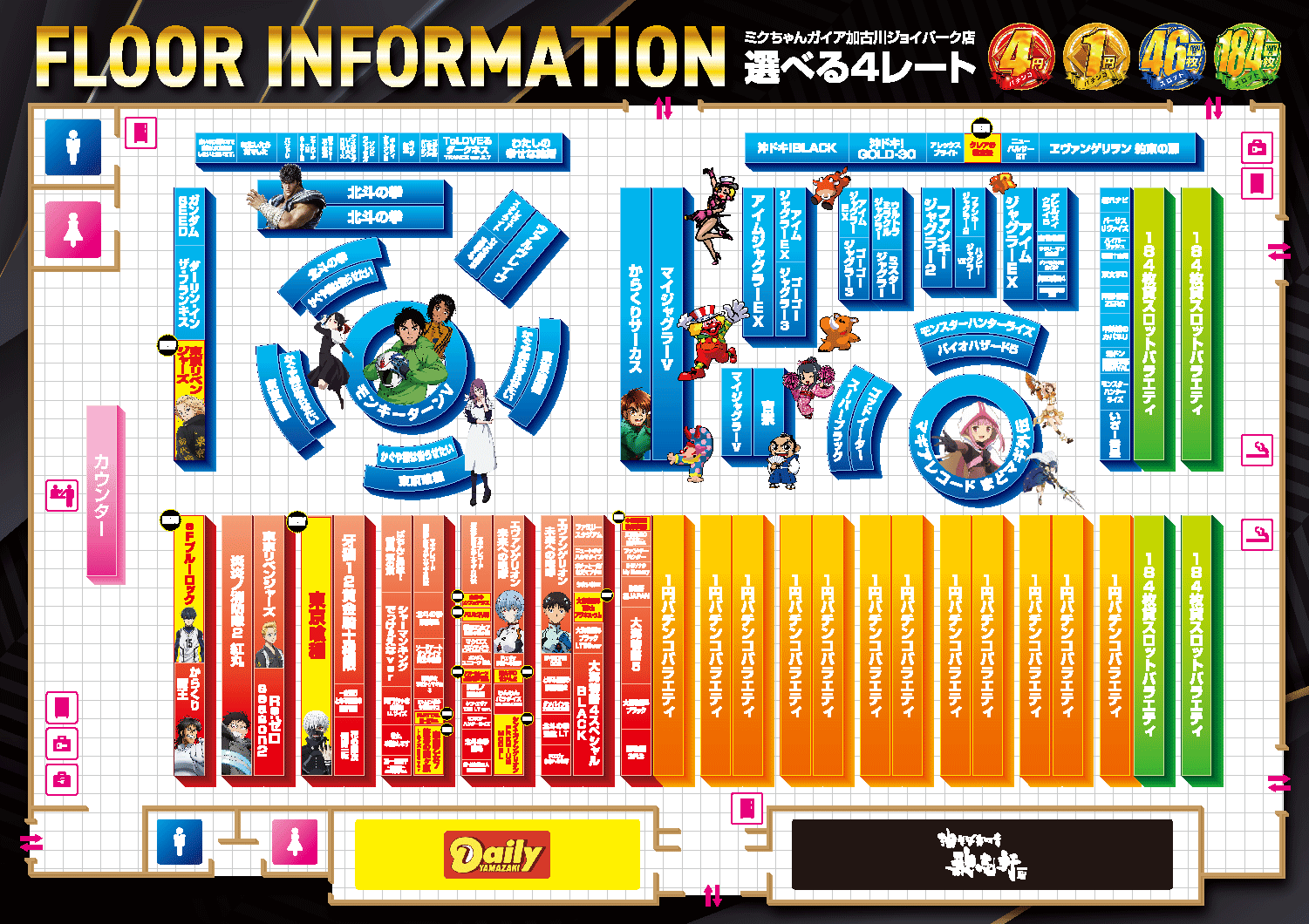 新台入替前日のみ、お休みとさせて頂きます。 |