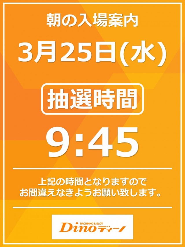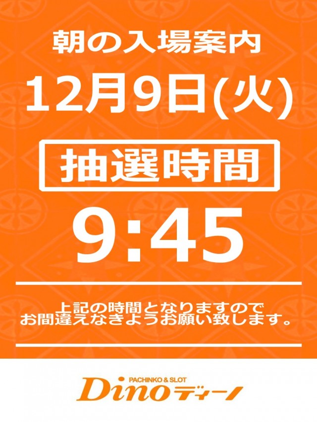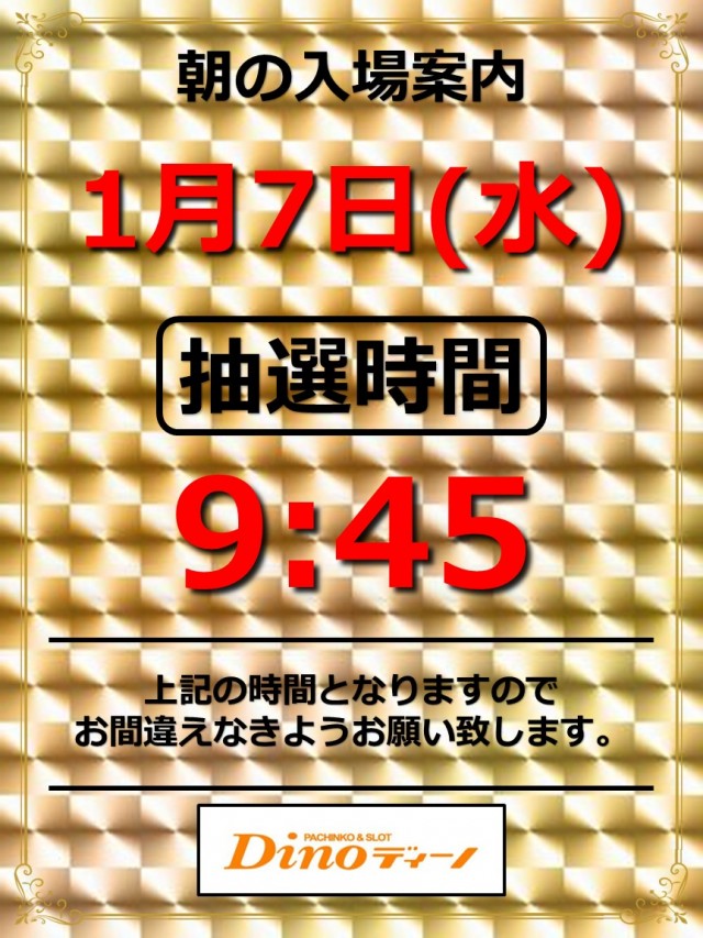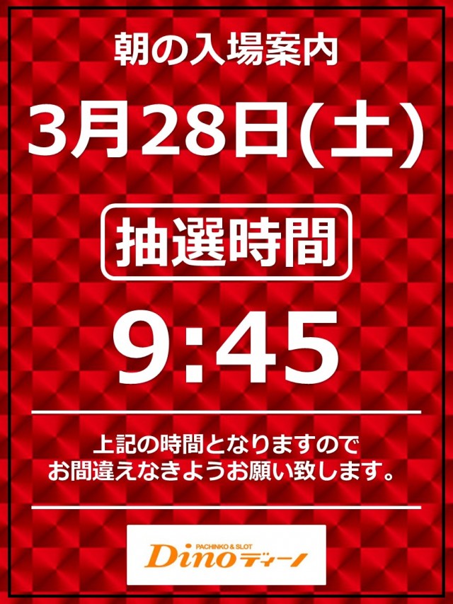 新台入替、又は混雑時には9時45分より抽選入場 |