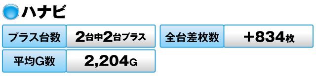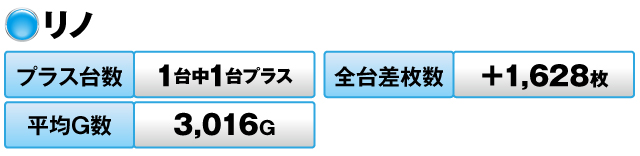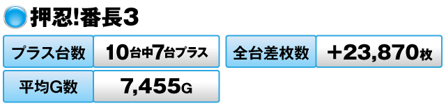 10台中7台がプラスで全台差枚数は+23,870枚、平均G数も7,455Gに及んだ。