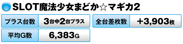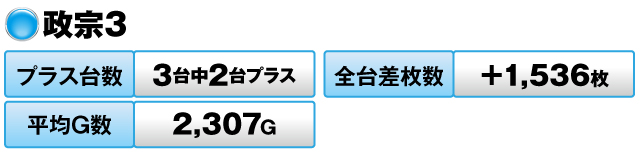 3台中2台がプラスで全台差枚数は+3,903枚をマークした。