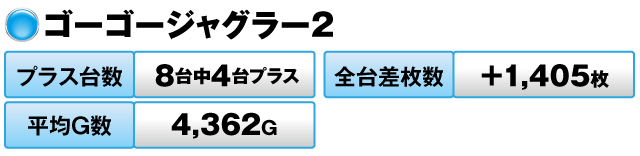 8台中4台がプラスで全台差枚数は+1,405枚をマークした。