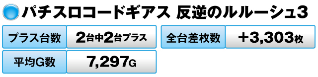 前者はトータル差枚数3,000枚弱、後者は取材日が導入から間もなく新台としてファンの期待が集まったか、稼働ゲーム数は8,000G超と高かった。