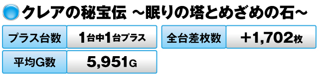 全台20スロの同店、全189台中64台がプラスだったが、トータルの差枚数はマイナスに終わってしまった。