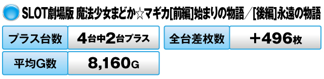 続いては魔法少女まどか☆マギカシリーズの2機種。『SLOT魔法少女まどか☆マギカ2』『SLOT劇場版 魔法少女まどか☆マギカ[前編]始まりの物語/[後編]永遠の物語』だ。