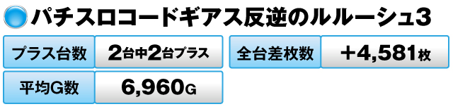 2台すべてがプラスで全台差枚数は+4,581枚だった。