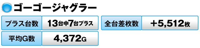 13台中7台がプラスで全台差枚数は+5,512枚をマーク。