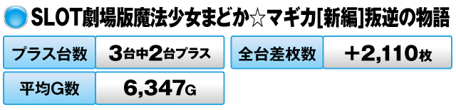 3台中2台がプラスで全台差枚数は+2,186枚だった。