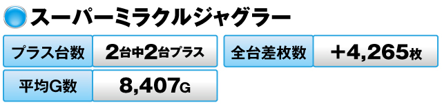 パチスロでは、『スーパーミラクルジャグラー』が活躍。