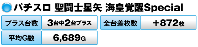 3台すべてがプラスで全台差玉数は+66,630発だった。