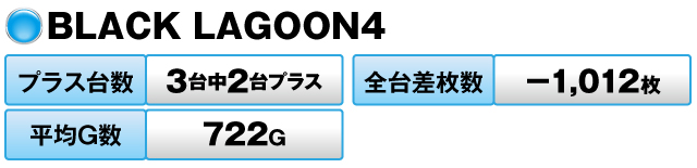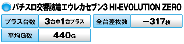 同様に、『アナターのオット!?はーです』、『パチスロ交響詩篇エウレカセブン3 HI-EVOLUTION ZERO』、『BLACK LAGOON4』の3機種は、いずれも優秀な挙動を見せていながら結果が伴わず、マイナスに甘んじてしまった。
