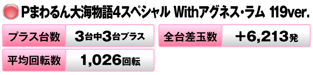 7台中4台がプラスで全台差玉数は+10,651発をマークした。