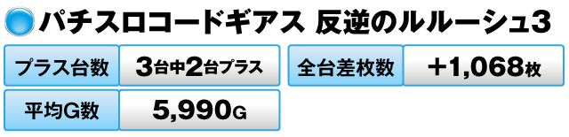 その他、新顔の『パチスロコードギアス 反逆のルルーシュ3』も上々の成績だった。