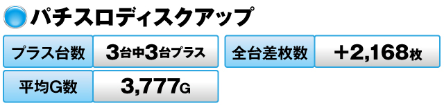 3台すべてがプラスで全台差枚数は+2,168枚だった。