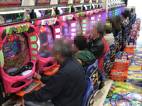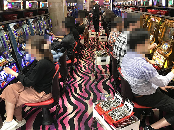 ホール内ではパチンコ・パチスロともに多くのプレイヤーが集まり、とてもにぎやかな状況となっていた。