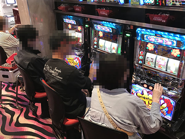 「CRスーパー海物語IN沖縄4」などの海物語シリーズも好評。大勢のプレイヤーでにぎわうシマ内の雰囲気は明るく、女性プレイヤーからの支持も厚かった。
