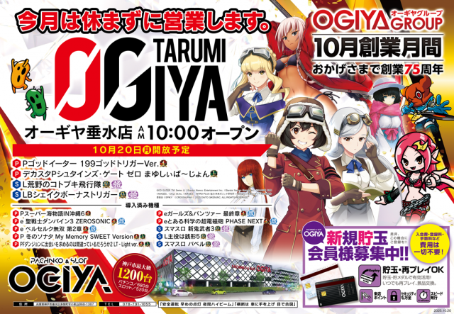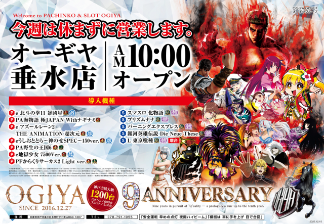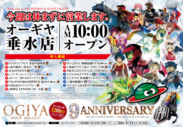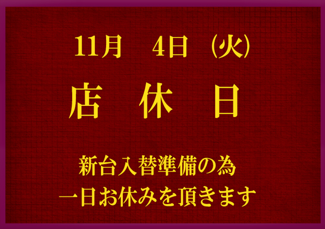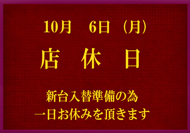 年中無休 ただし新台入替による検査日はお休みを頂きます |