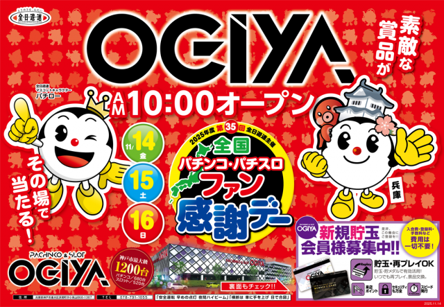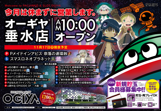 AM10:00 OPEN!!11月17日開放の新台は