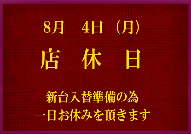 年中無休 ただし新台入替による検査日はお休みを頂きます |