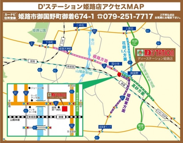 兵庫県姫路市御国野町御着674-1 大きな地図で見る |