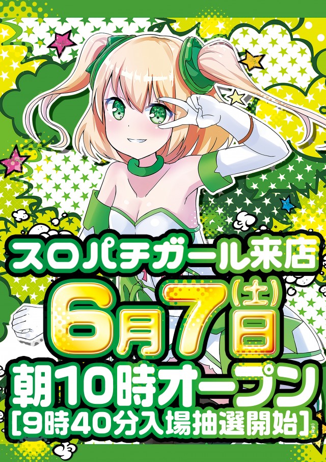 6月7日【土】スロパチガール来店!9時40分抽選開始‼