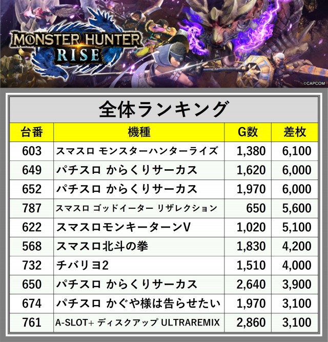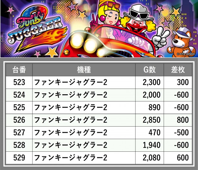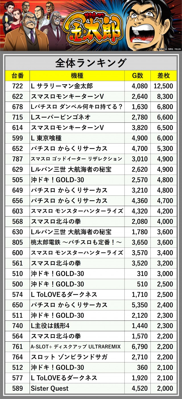 厳選された取材対象機種をはじめ、その他スロット全体から好記録が飛び出した!プレイヤーが楽しんだ1日を下記データにて振り返ってみて欲しい。