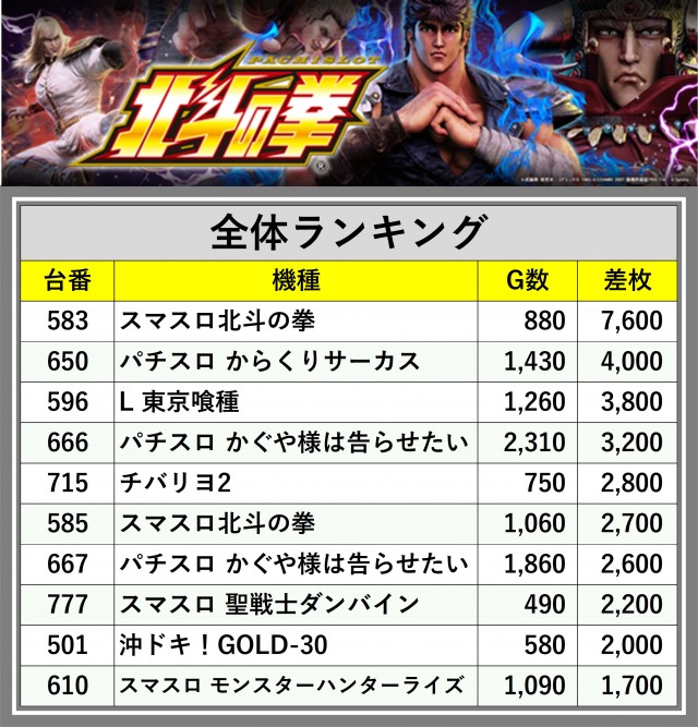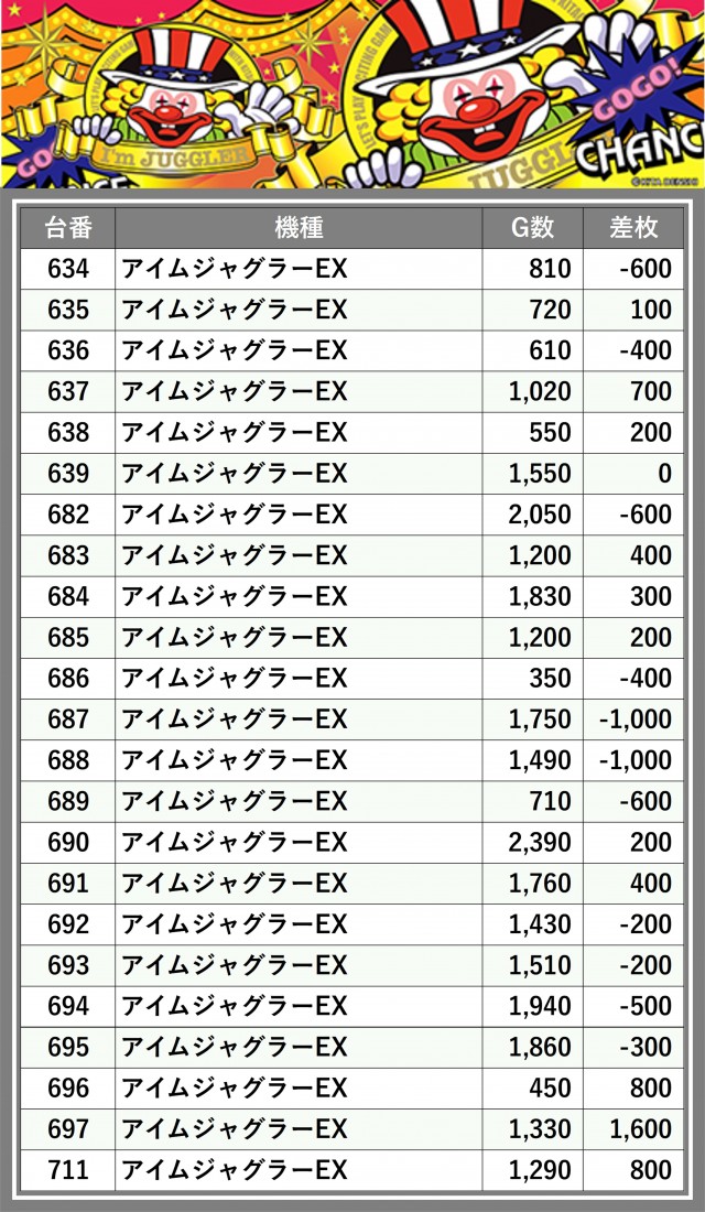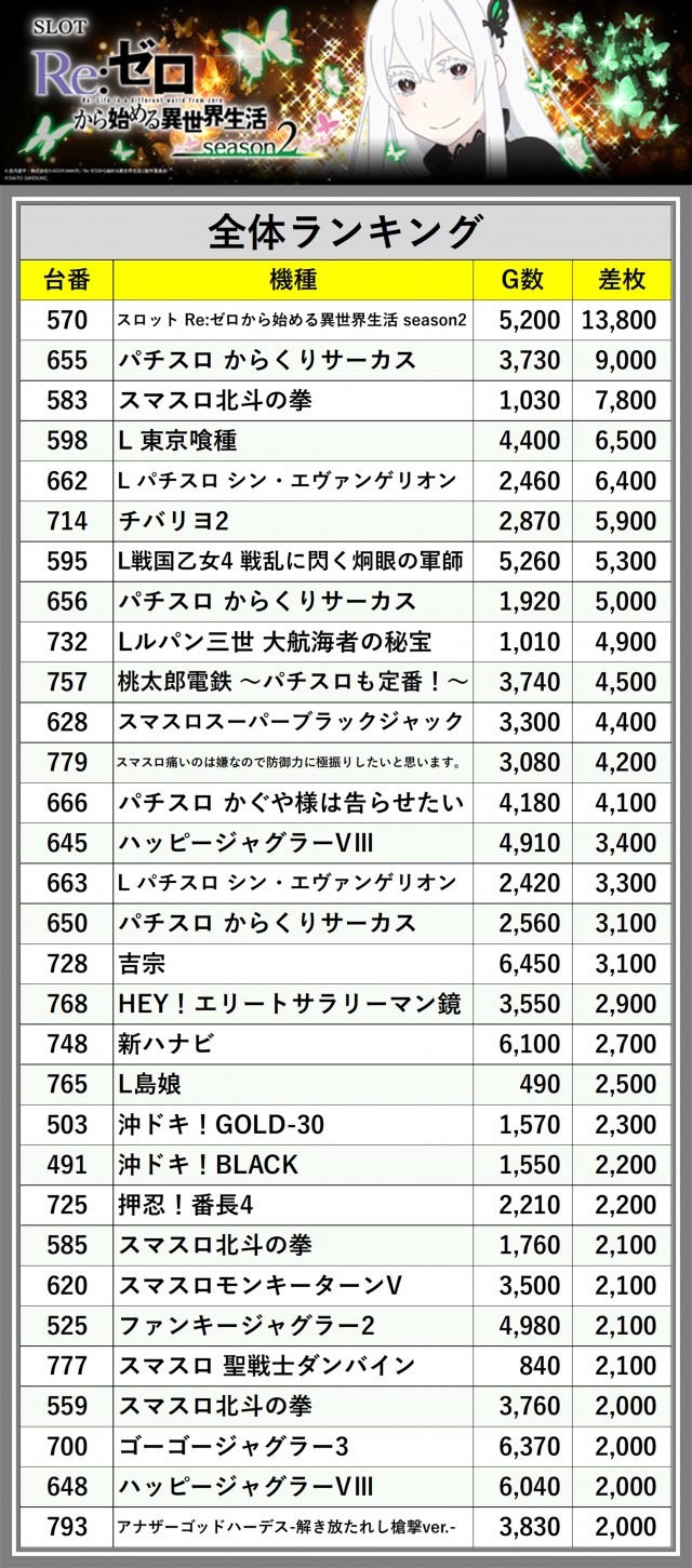 厳選された取材対象機種をはじめ、その他スロット全体から好記録が飛び出した!プレイヤーが楽しんだ1日を下記データにて振り返ってみて欲しい。