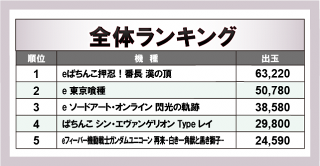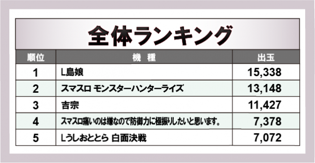 ※出玉数順に掲載しています