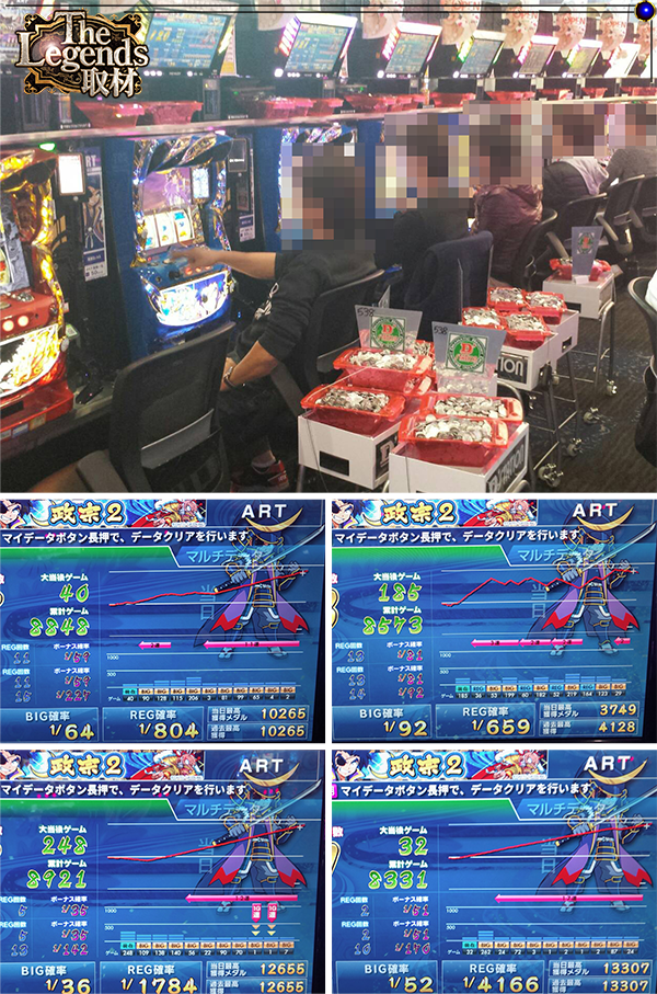 2箱アリ(2台)。1箱アリ(6台)。BIG17回/REG17回(ボーナス合算確率1/100)/最大2773枚獲得