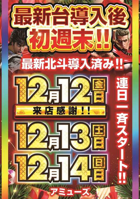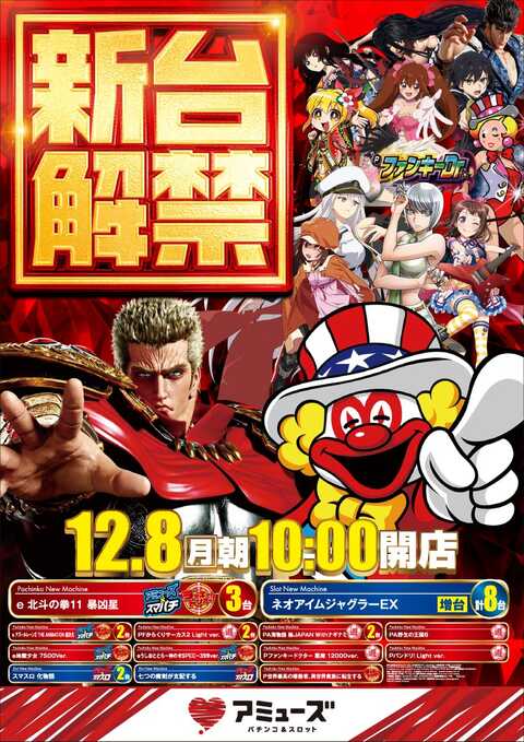 ★Since.2018.8.8★12月8日 月曜日最新台最・速・解・禁e 北斗の拳11 暴凶星 3台