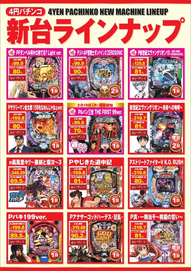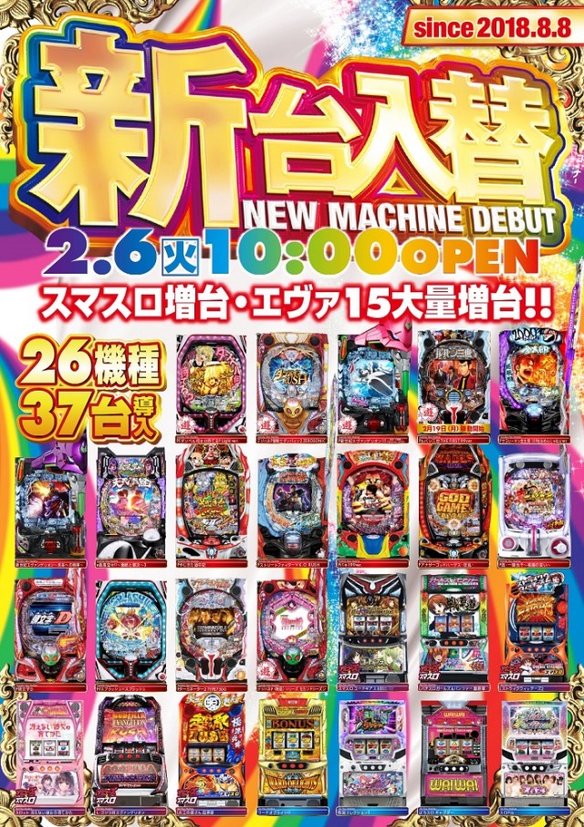 明日2月6日は!新台入替初日&スマスロ増台10時オープン‼