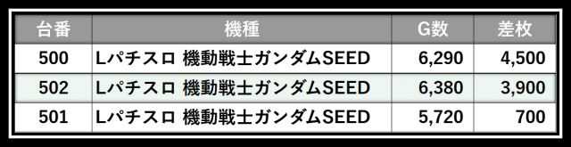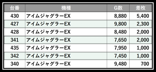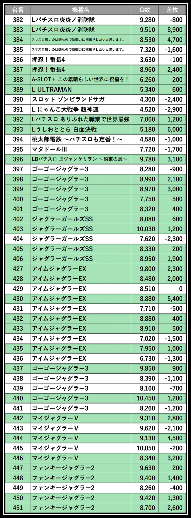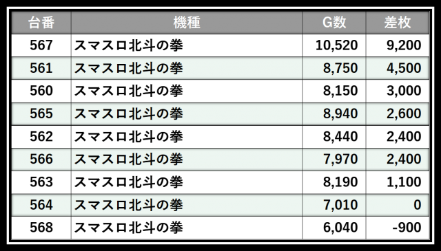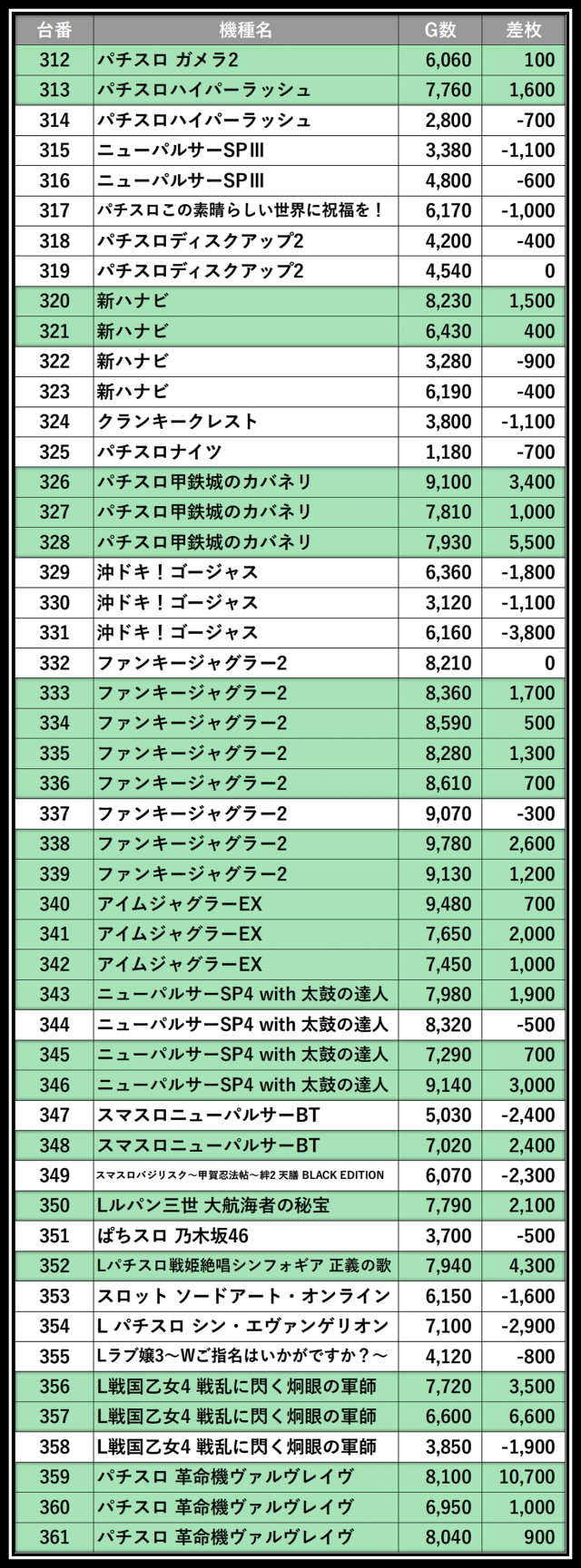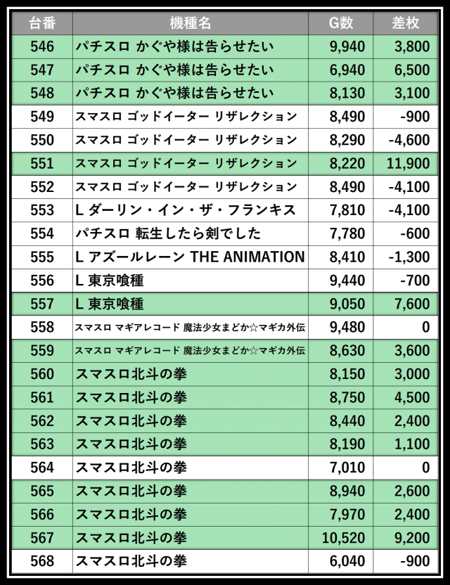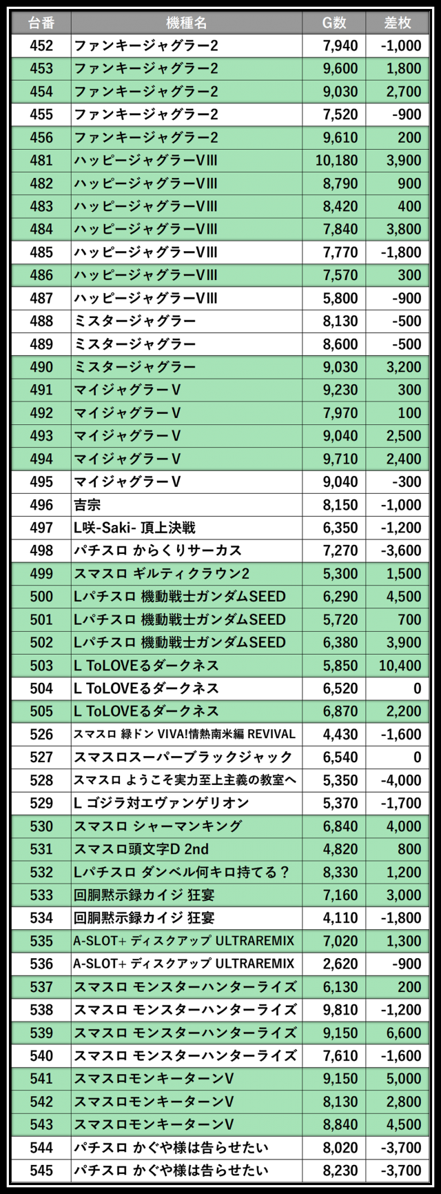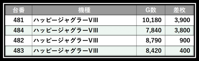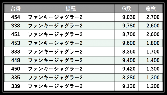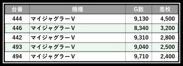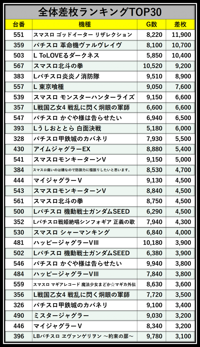 ※差枚数順に掲載しています