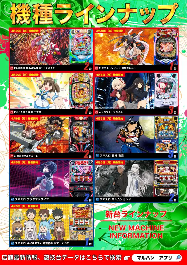 2月20日(金)新台入替!朝10時オープン!